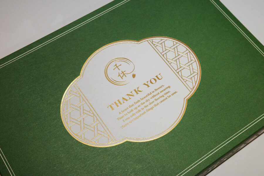 さらに、ロゴを含めた中心部分には金の箔押しを施し、